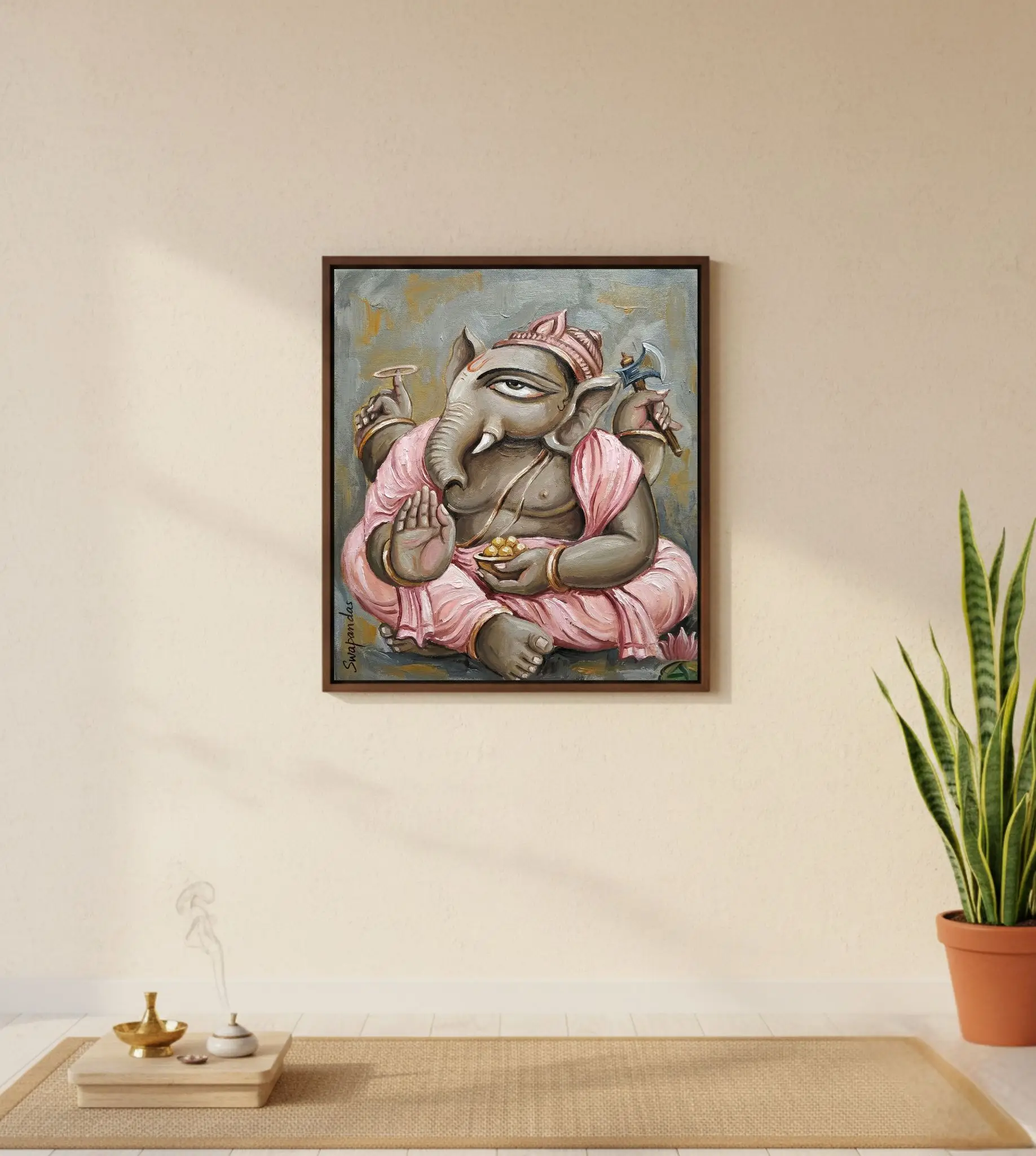 Divine Ganesha is a refined digital wall art by artist Swapan Kumar Das, originally created as a physical artwork and professionally refined for digital display, offered as a downloadable artwork.