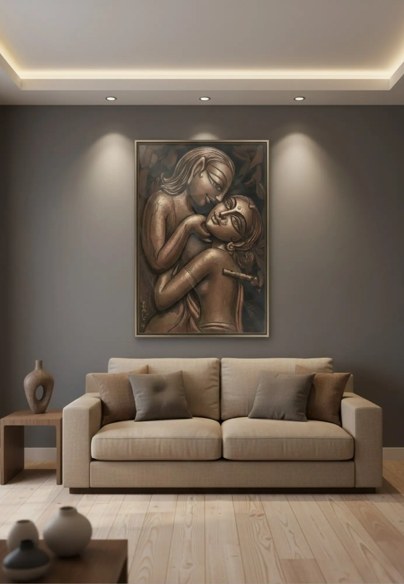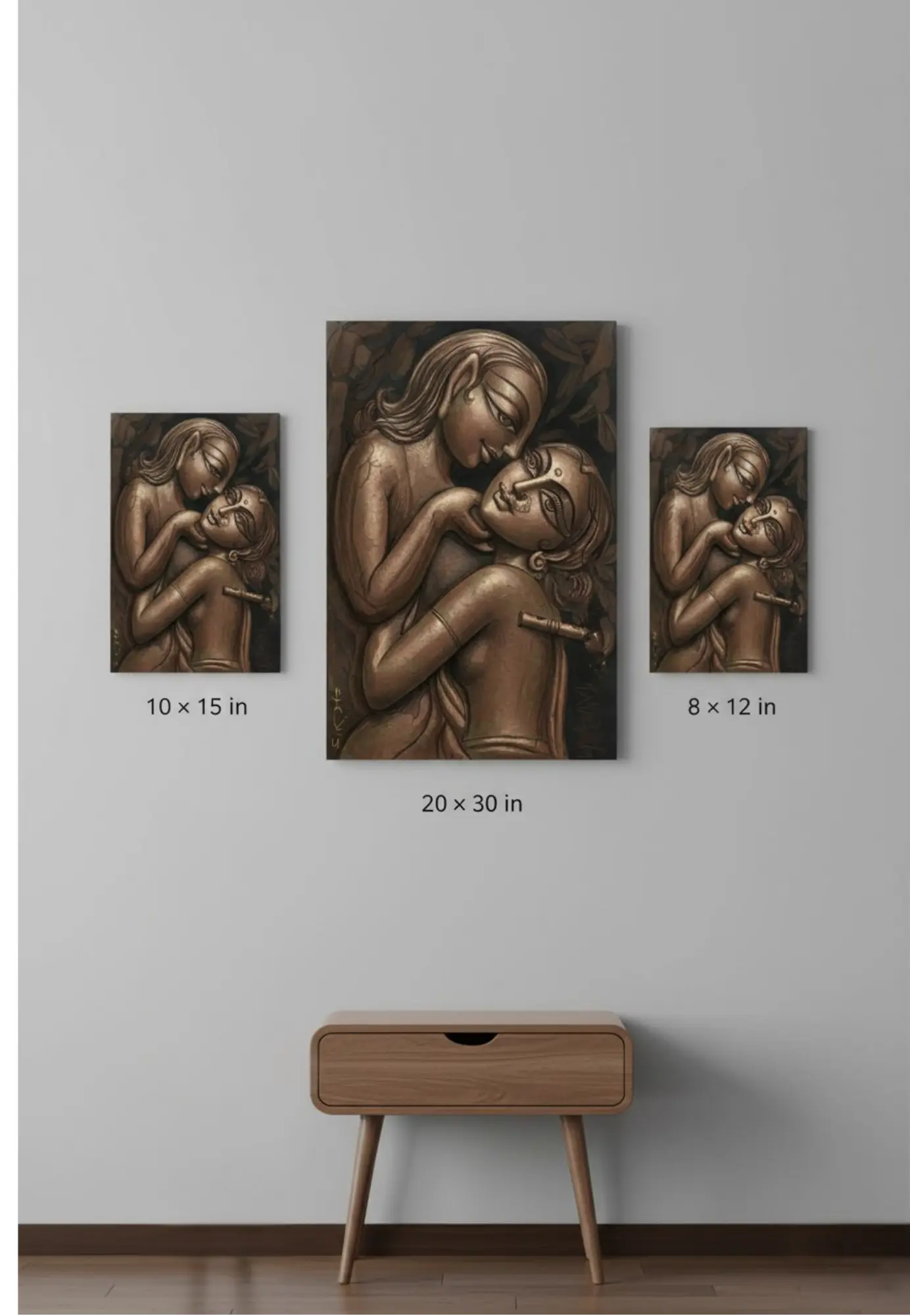 Designed to complement living rooms, bedrooms, meditation spaces, and creative corners, Eternal Embrace adds a calm yet powerful visual statement to any wall. Whether displayed as a centerpiece or part of a curated art collection, it invites the viewer to pause, feel, and connect with the quiet beauty of human intimacy.