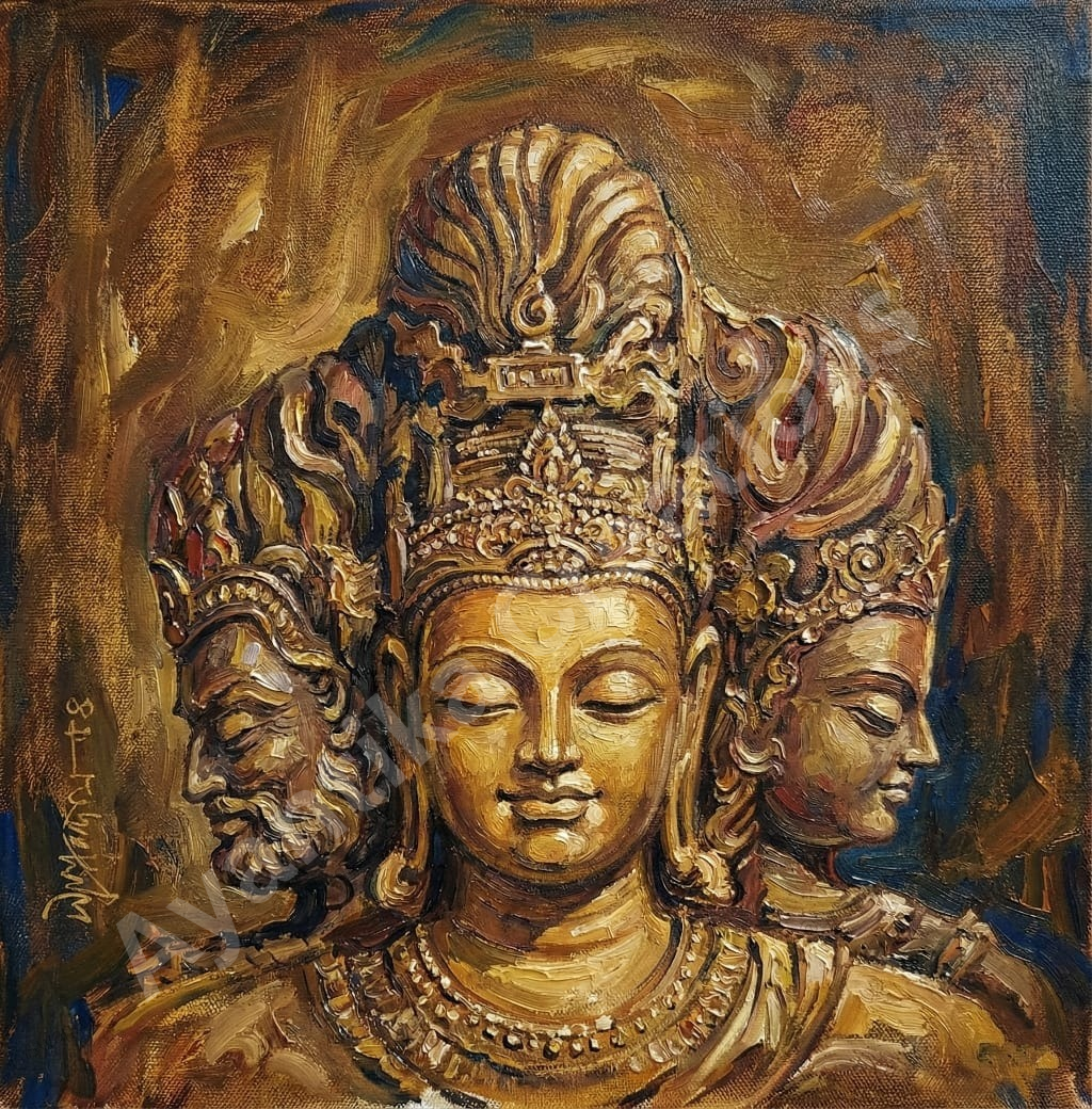 Eternal Trinity is a digitally hand-painted wall art by artist Swapan Kumar Das, inspired by the timeless concept of the divine trinity—symbolizing balance, creation, preservation, and transformation. Crafted with a painterly digital approach, the artwork reflects the depth, texture, and expressive quality of traditional brushwork while existing entirely in a refined digital form.