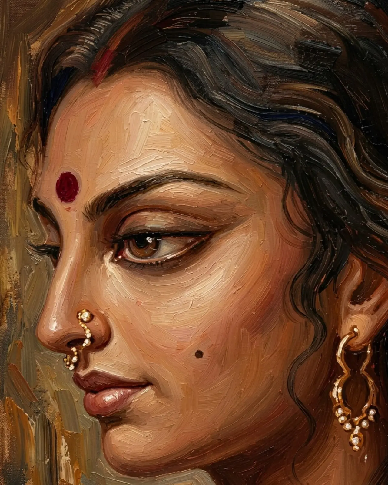 • Regal Expression: The sharp profile, deep eyes, and calm demeanor reflect quiet strength and aristocratic beauty.