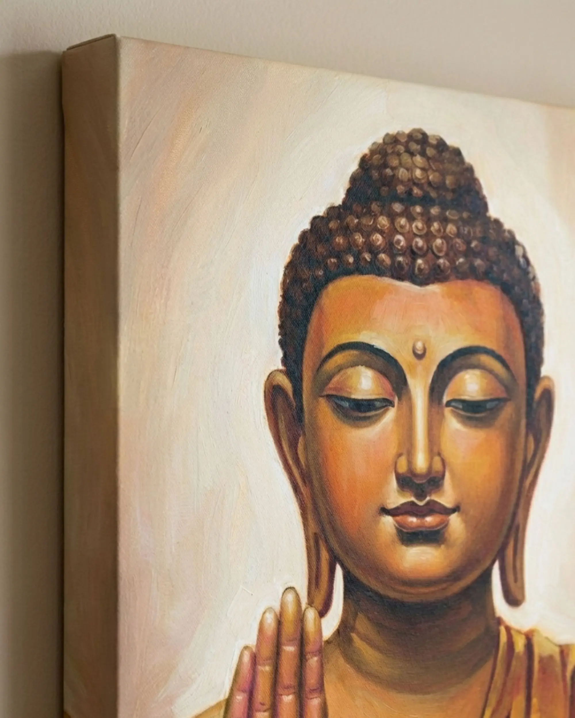 Serene Buddha Digital Wall Art is a calming and spiritually inspired printable artwork created by artist Swapan Kumar Das. This artwork portrays Lord Buddha in a peaceful blessing posture, symbolizing mindfulness, inner balance, compassion, and tranquility. The warm golden tones and serene expression make it a timeless piece for spiritual and contemporary interiors alike.