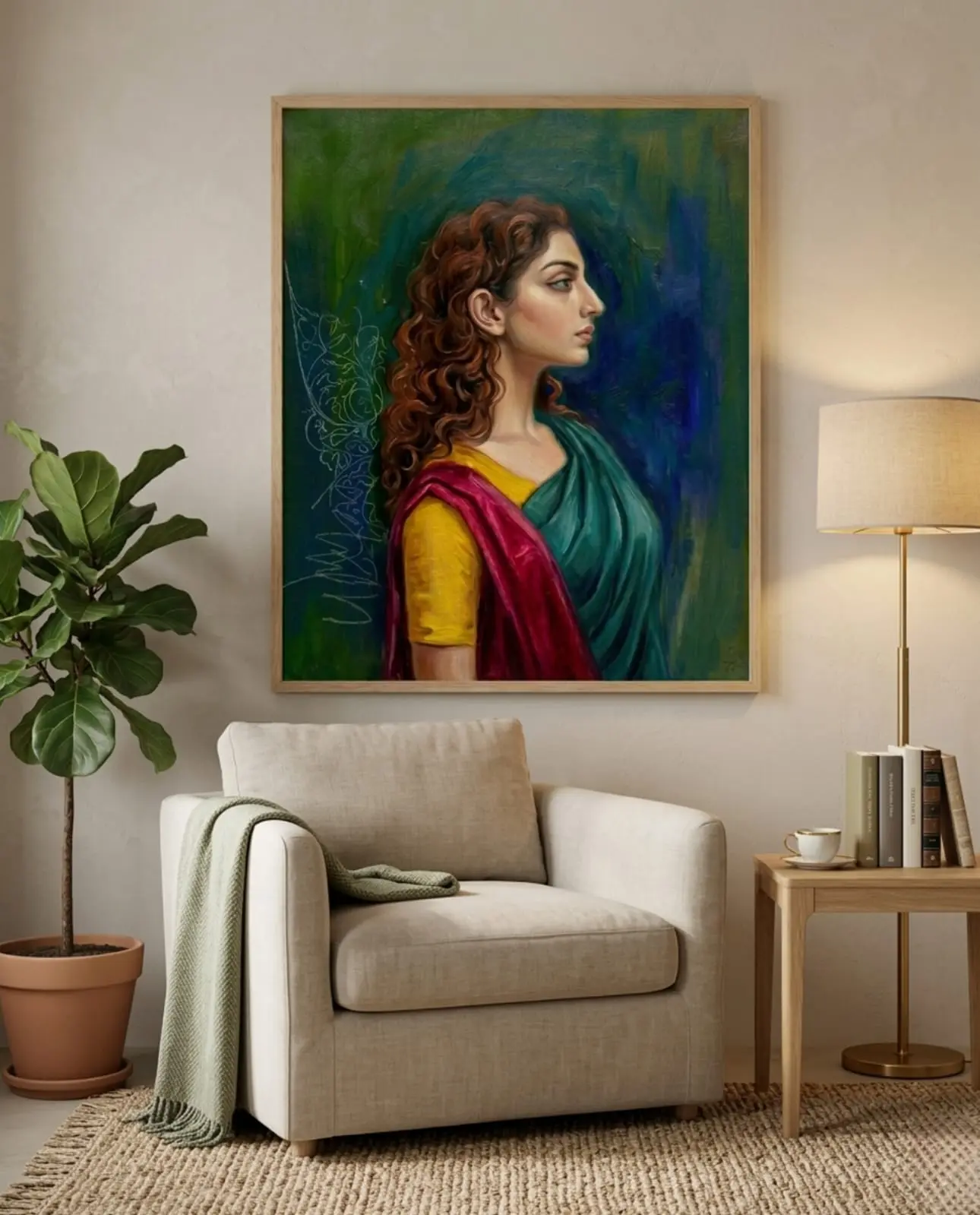 Vishnupriya Wall Art – A Portrait of Timeless Grace Contemporary Indian Painting | Printable Digital Download