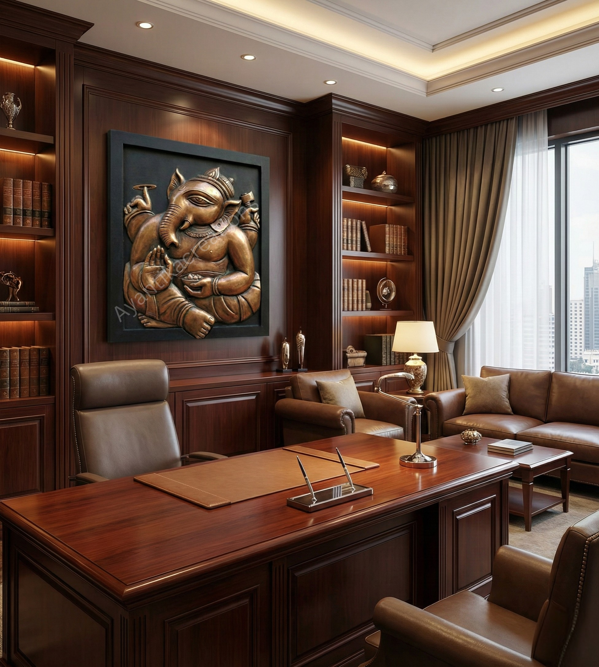 Originally created by hand and later digitally refined and preserved in high resolution, the artwork faithfully retains the sculptural depth, metal-textured finish, and warm tonal richness of the original piece. The digital medium allows every detail to remain crisp, timeless, and visually immersive.